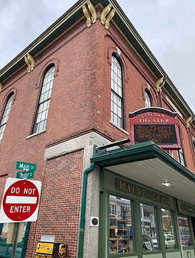 All through the Gay Nineties and into the early part of the 20th century, Lincoln Hall was the social center of the community. The Taniscot and Massosoit Fire Companies held their drills as well as the Grand Firemen’s Ball in the hall. It was used for graduations, dances, benefits, temperance meetings, town meetings, and conventions. Other activities in the hall consisted of dancing classes, dog shows, bell-ringing, poetry readings, road shows, minstrel shows and stock company productions – even turkey shoots! In 1903, a barbershop quartet performed in the hall singing, “You’re the Flower of my Heart” before it was actually published as the well-known “Sweet Adeline.” Around 1910, roller-skating became popular across the US, and Damariscotta was no exception. A wooden floor was laid in a circular pattern to facilitate speedier action by the skaters in the hall. There was almost a major setback for Lincoln Hall in 1906 when the building was struck by lightning. Fortunately, the damage was minimal, and activities were able to continue. Then, in 1949, the hall was threatened again by a fire downstairs in the store of LH Pierce, but a night watchman called the Fire Department and it was contained, with little damage. Live theatrical productions have also always been a part of the life of Lincoln Hall. A notice in the Damariscotta Advertiser of March 1876 states, “The organization of a Dramatic Company with its necessary officers has been effected, and the arrangements for its first performance, are being made.” Touring companies also made it to the theater, however with less success. In that same issue of the Advertiser it states, “The Boston Dramatic Company presented, “Uncle Tom’s Cabin’ and “Rip Van Winkle,” in Lincoln Hall, March 15 and 16. Their rendition of these well know plays was good; but such performances from abroad, fail to draw crowded houses here.” In the early years of live theater productions, there were originally four backdrop scenes used for each show – painted by a Mr. Hudson of Portland. A woodland scene, a parlor, a kitchen, and a street scene served most any purpose. Two small green rooms and dressing rooms flank the stage on each side and wonderful graffiti fills the walls from practically every actor who has taken part in a production at Lincoln Hall, starting back to at least 1902 and continuing to the present day. In 1924, a Mr. Otis S. Page (the son of co-owner of the hall, Mrs. Oscar Page) made a significant change in the theater – installing permanent chairs. In addition, he sound-proofed the walls in order to accommodate moving pictures. The movie screen he inaugurated was said to be the largest movie screen in the state. Silent films were accompanied by a pianist who played appropriate music for love scenes or exciting chases. Eventually came the talkies. At some point in the late sixties to early seventies, the theater was taken over by Mr. Robert H. Reny – who kept its traditions going until the end of 1991, when the theater was sold to the Lincoln County Community Theater, a community performing arts group that had been performing around the county for two decades. On March 17, 1992, to seal the deal Mr. Reny wrote: “I just wanted to make sure that we have a complete understanding that Lincoln Theatre will continue to survive, will continue to play movies, and that you people will be using it for four or more times a year for your own productions. It will also continue to be part of the community such as Santa Claus arrivals, hopefully free movies on Saturday afternoon which can be taken care of by requests from the business and professional communities and that the operation will continue so that Damariscotta will enjoy the continuance of the Lincoln Theater as it has in the twenty odd years since we took it over.” Inside Lincoln Hall, there were originally three large kerosene chandeliers hanging across the auditorium – the original plaster rosettes from these still grace the soaring ceiling today. The beautiful silk brocade panels that you see on the walls today are the original panels that were installed during the 19th century. The original windows, having been boarded up for decades, were restored in 2017-18.